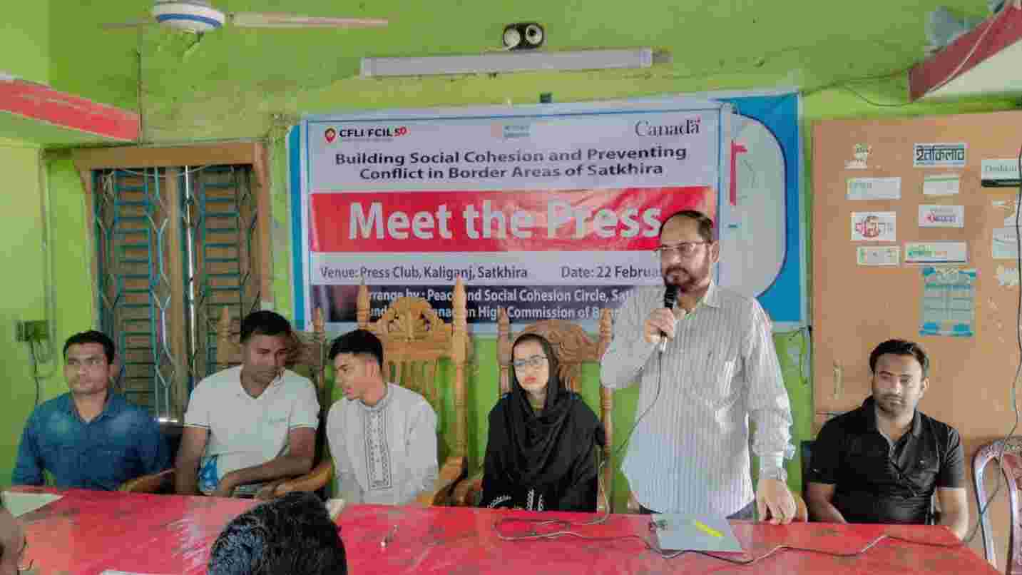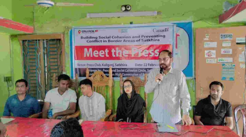 তাপস কুমার ঘোষ, কালিগঞ্জ: সাতক্ষীরার কালিগঞ্জে শান্তি, সংহতি ও সামাজিক সম্প্রীতি বজায় রাখা এবং সংঘাত প্রতিরোধে সচেতনতা বৃদ্ধির লক্ষ্যে পিএসসিসি গ্রুপের উদ্যোগে এক সাংবাদিক সম্মেলন অনুষ্ঠিত হয়েছে।রবিবার (২২ ফেব্রুয়ারি) সকাল ১০টায় কালিগঞ্জ প্রেসক্লাব মিলনায়তনে অনুষ্ঠিত এ সম্মেলনের আয়োজন করে রূপান্তর এবং সার্বিক সহযোগিতা প্রদান করে বাংলাদেশে কানাডা হাইকমিশন।অনুষ্ঠানে সভাপতিত্ব করেন রূপান্তরের প্রজেক্ট কো-অর্ডিনেটর গাজী মফিজুর রহমান। প্রধান অতিথি হিসেবে বক্তব্য রাখেন কালিগঞ্জ প্রেসক্লাবের সভাপতি শেখ সাইফুল বারী সফু।