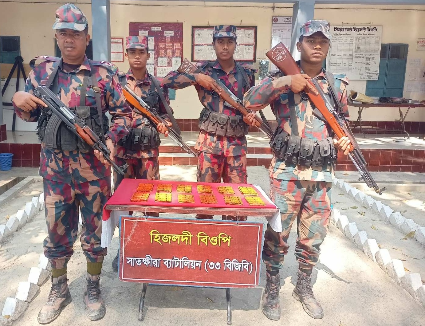 সোমবার (২ মার্চ) সাতক্ষীরা ব্যাটালিয়ন (৩৩ বিজিবি)-এর অধীন তলুইগাছা, কুশখালি, কাকডাঙ্গা, মাদরা, হিজলদী ও চাঁন্দুরিয়া বিওপি এবং বাঁকাল চেকপোস্টের আভিযানিক দল পৃথক পৃথকভাবে এসব অভিযান পরিচালনা করে। অভিযানে শুল্ক ফাঁকি দিয়ে ভারত থেকে অবৈধভাবে বাংলাদেশে পাচারের উদ্দেশ্যে আনা বিপুল পরিমাণ ভারতীয় ঔষধ ও শাড়ি জব্দ করা হয়।