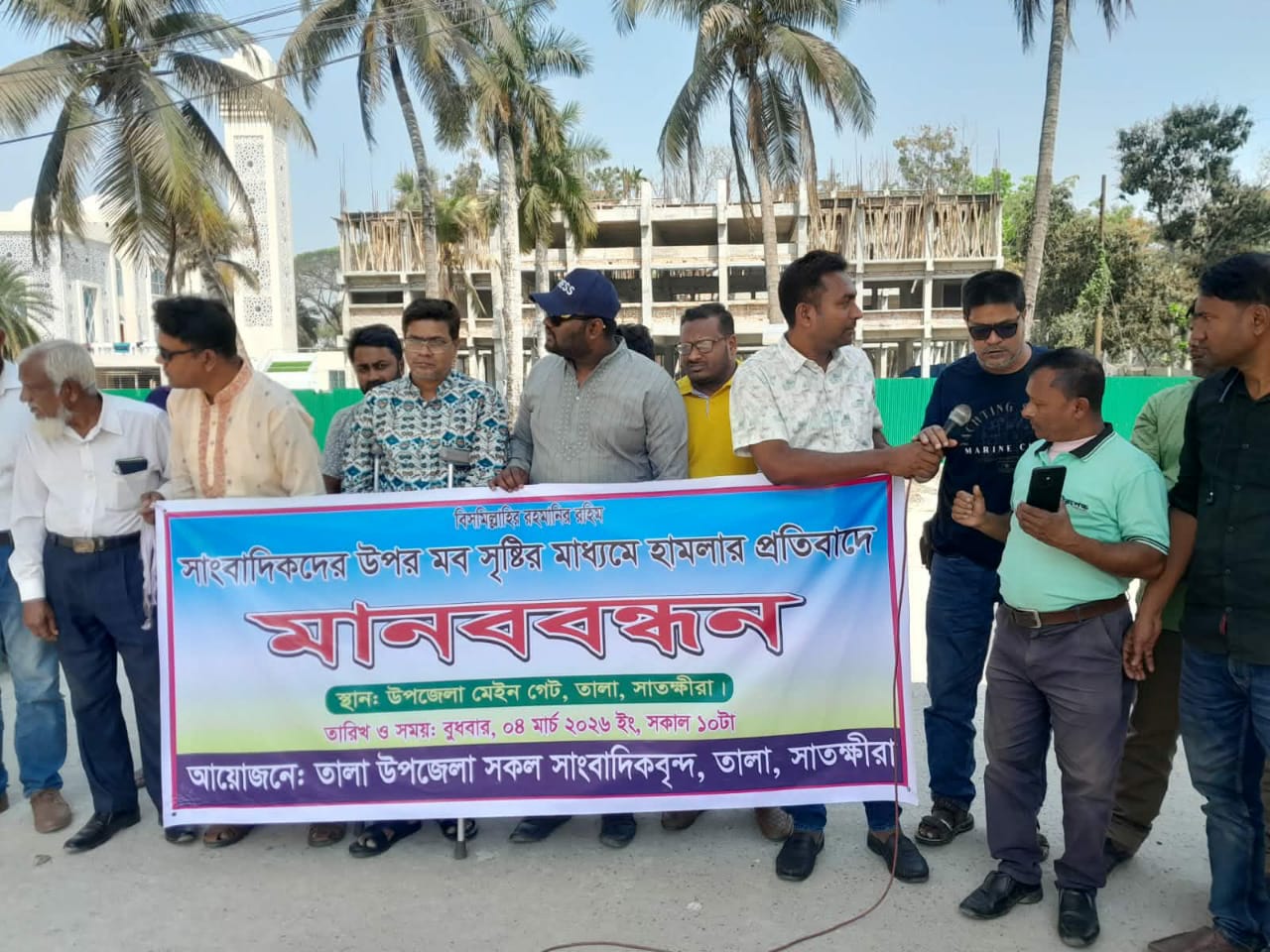 সাংবাদিকদের উপর হামলা ও মিথ্যা মামলার প্রতিবাদে তালায় মানববন্ধন