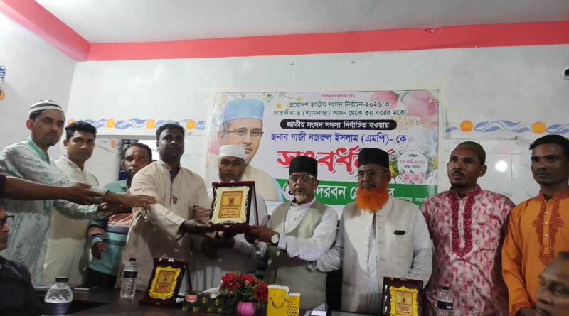 সুন্দরবন প্রেস ক্লাবের সভাপতি বিলাল হোসেনের সভাপতিত্বে, যুগ্ম সাধারণ সম্পাদক ওসমান গনি সোহাগের সঞ্চালনায়, সংবর্ধনা অনুষ্ঠানে প্রধান অতিথি হিসেবে উপস্থিত থেকে বক্তব্য রাখেন বাংলাদেশ জামায়াত ইসলামের মনোনীত সাতক্ষীরা ৪ আসনের সংসদ সদস্য গাজী নজরুল ইসলাম, বিশেষ অতিথি হিসেবে উপস্থিত থেকে বক্তব্য রাখেন, বাংলাদেশ জামায়াত ইসলামের শ্যামনগর উপজেলা শাখার আমির মাওলানা আব্দুর রহমান, সাবেক উপজেলা আমির মাওলানা আব্দুল মুজিদ। আরো উপস্থিত ছিলেন বেসরকারি প্রতিষ্ঠান লিডার্সের নির্বাহী পরিচালক মোহন কুমার মন্ডল, সমাজ সেবক মোফাজ্জেল হোসেন সহ সুন্দরবন প্রেসক্লাবের সকল সাংবাদিকবৃন্দ।