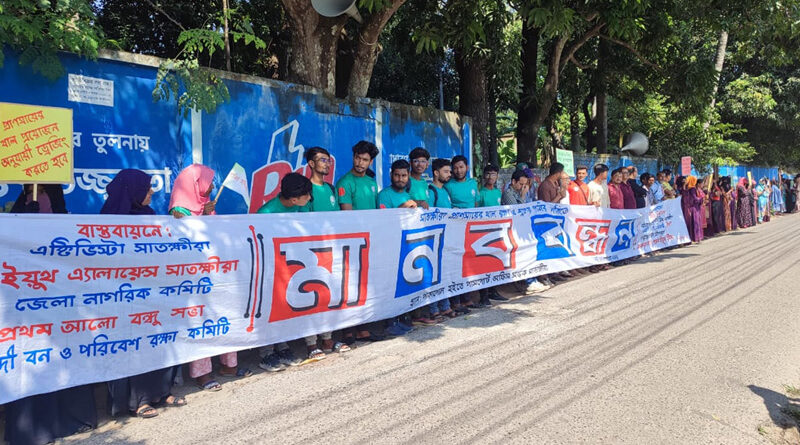 Read Moreস্টাফ রিপোর্টার: সাতক্ষীরার প্রাণসায়ের খাল রক্ষা, জলাবদ্ধতা দূরীকরণ ও সুপেয় পানির দাবীতে মানববন্ধন অনুষ্ঠিত হয়েছে। বৃহস্পতিবার (২৩ অক্টোবর) সকাল ১০