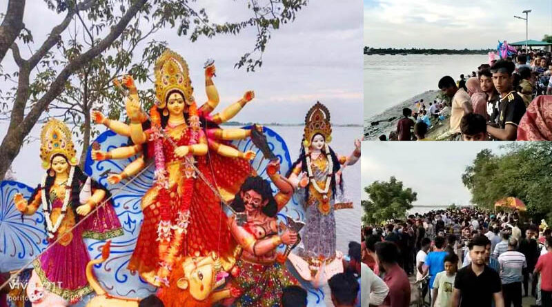 সাতক্ষীরার ইছামতি নদীতে মিলনমেলা ছাড়াই প্রতিমা বিসর্জন