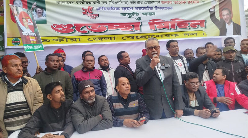 Read Moreস্টাফ রিপোর্টার: বাংলাদেশ জাতীয়তাবাদী দল (বিএনপি)-এর ভারপ্রাপ্ত চেয়ারম্যান তারেক রহমানের ঐতিহাসিক স্বদেশ প্রত্যাবর্তন দিবস উপলক্ষে সাতক্ষীরায় প্রস্তুতি সভা ও শুভেচ্ছা
